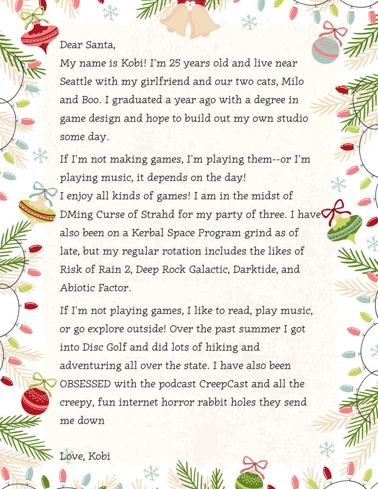 This game was made for the Secret Santa Jam 2025 for Kobi:
